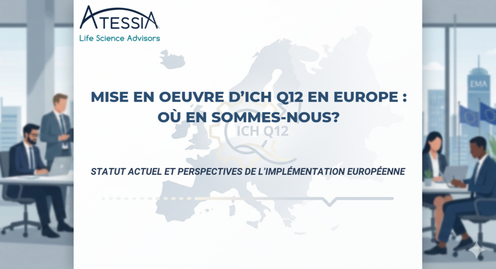 En mars 2020, soit deux mois après l’adoption de la ligne directrice ICH Q12 par le CHMP, la Commission Européenne et l’EMA ont publié une note explicative relative à la mise en œuvre avec des restrictions dans l’Union Européenne (i.e. l’ICH Q12 Step 5).